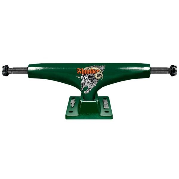 Los Thunder Hollow Scream Shadowhorn son la nueva joya de la colección Thunder, combinando rendimiento profesional con un diseño agresivo que no pasa desapercibido. Con su acabado verde metálico y el gráfico Shadowhorn, estos ejes destacan tanto por su estilo como por su innovación técnica.